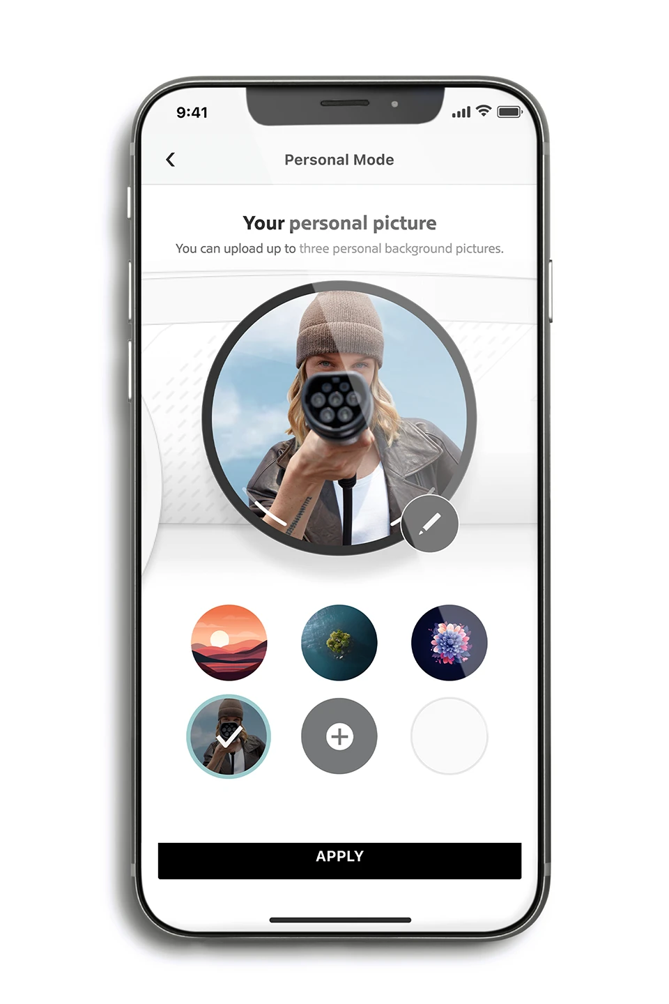 - Επίλεξε από προεπιλεγμένες εικόνες. Ή ακόμα ανέβασε τη δική σου εικόνα στο αυτοκίνητο μέσω του MINI App.